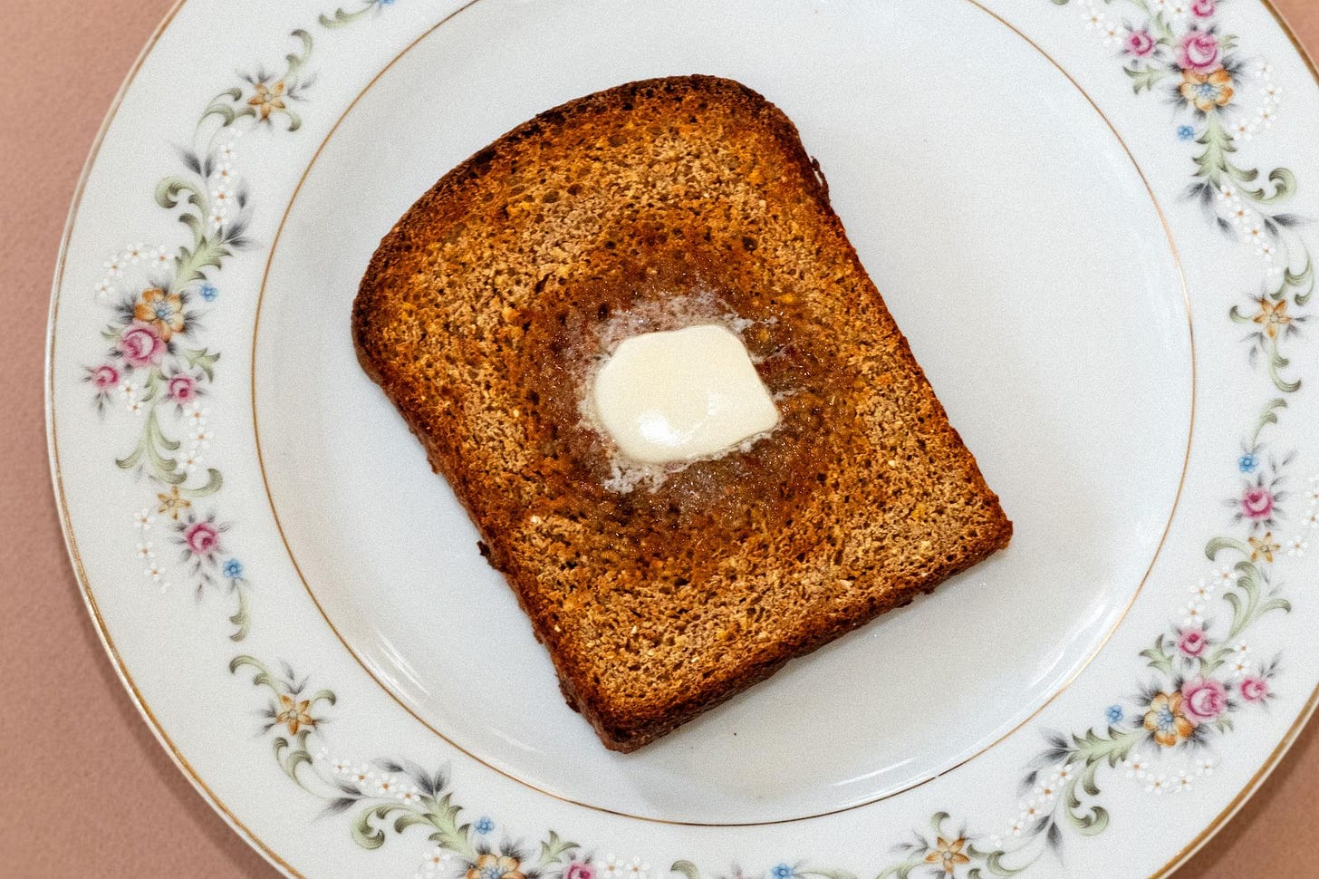 This recipe makes “bread for toasting.” Its dense, compact crumb holds well in a toaster oven and wont fall apart when spreading butter and jam over it. Its slightly sweet from the honey and very grainy from the cornmeal and whole wheat flour. We’ve tried making it using 100% whole wheat flour and love it. This recipe is adapted from Beaujolais Café’s cookbook, Morning Food. View the recipe on Notes on Toast HERE.